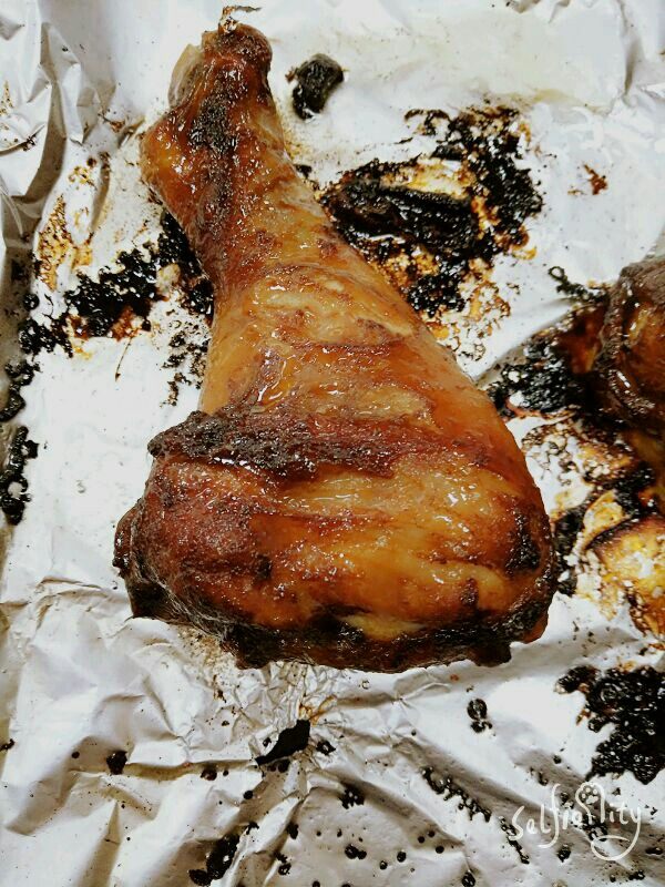 6:最后五分钟将鸡腿翻面,放上混合香料,出锅就好了。