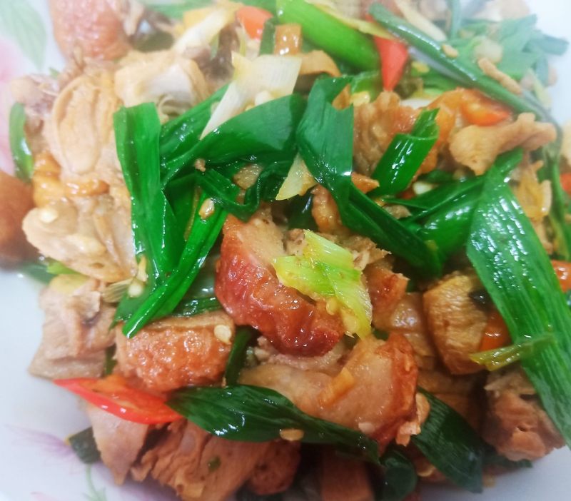 蒜苗炒鸭补