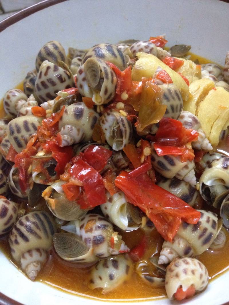 1:食材:花螺(已清洗)、尖椒(已清洗切开)