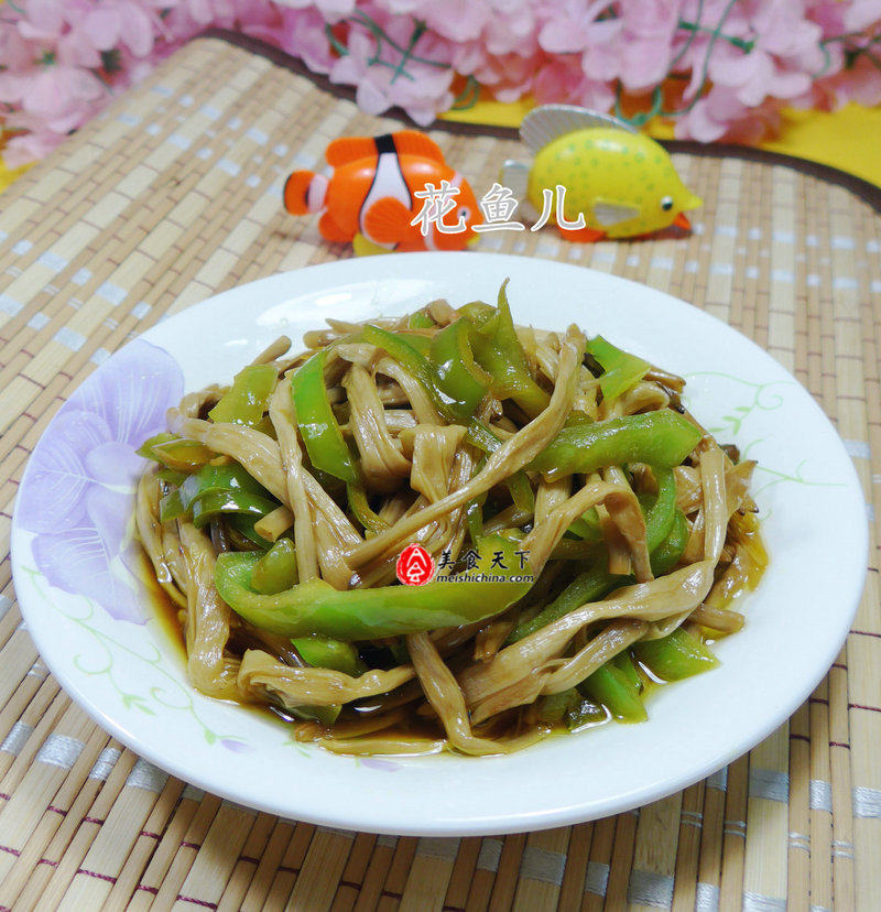 4:焯好水的青、黄椒立即放入冷水中过凉后控干水分备用