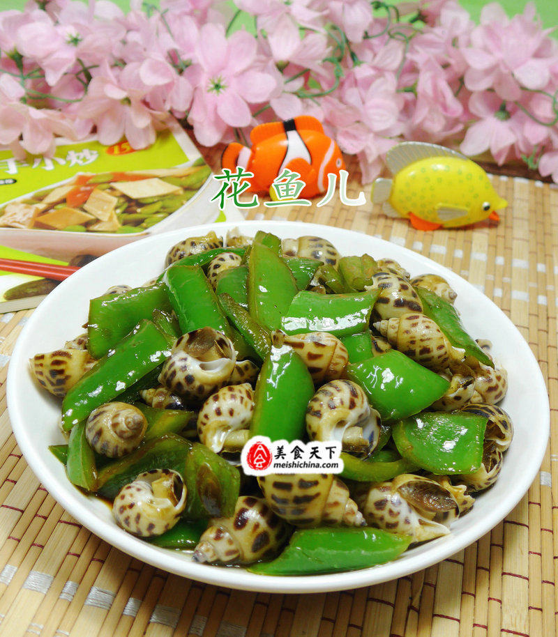 花螺800克;黄椒30克;青椒30克;蒜10克;