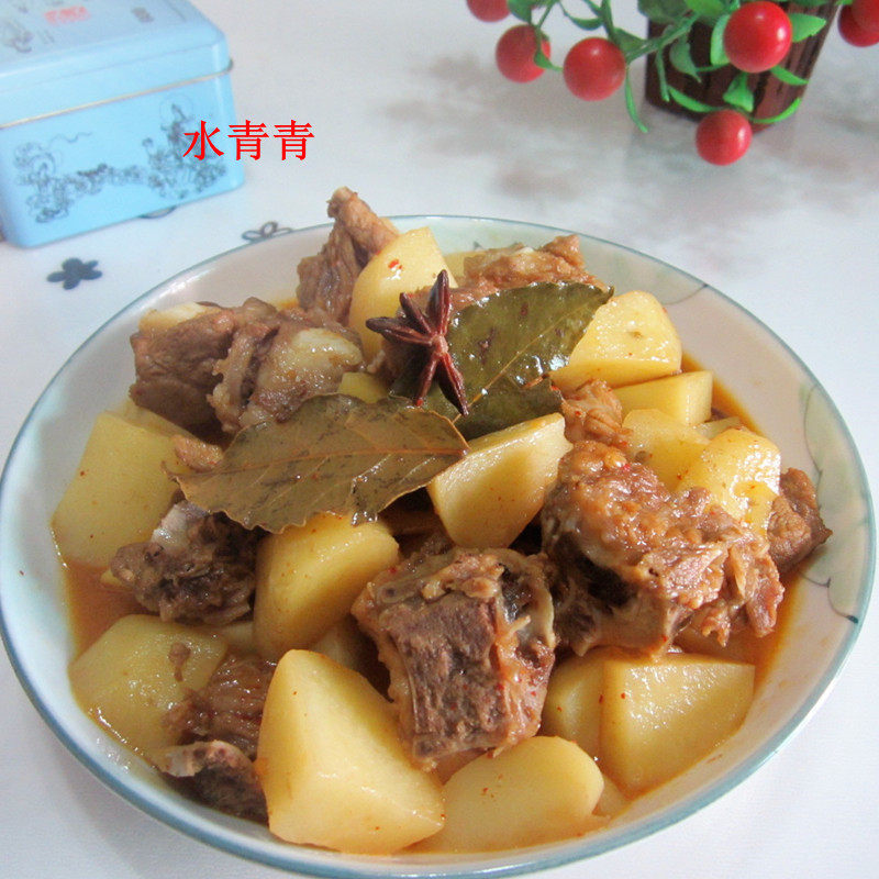 2:排骨斩——土豆去皮切丁,备姜,香叶,大料。