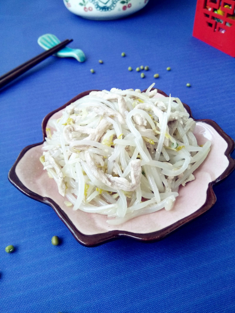 1:材料:猪肉(已清洗)、绿豆芽(已清洗)