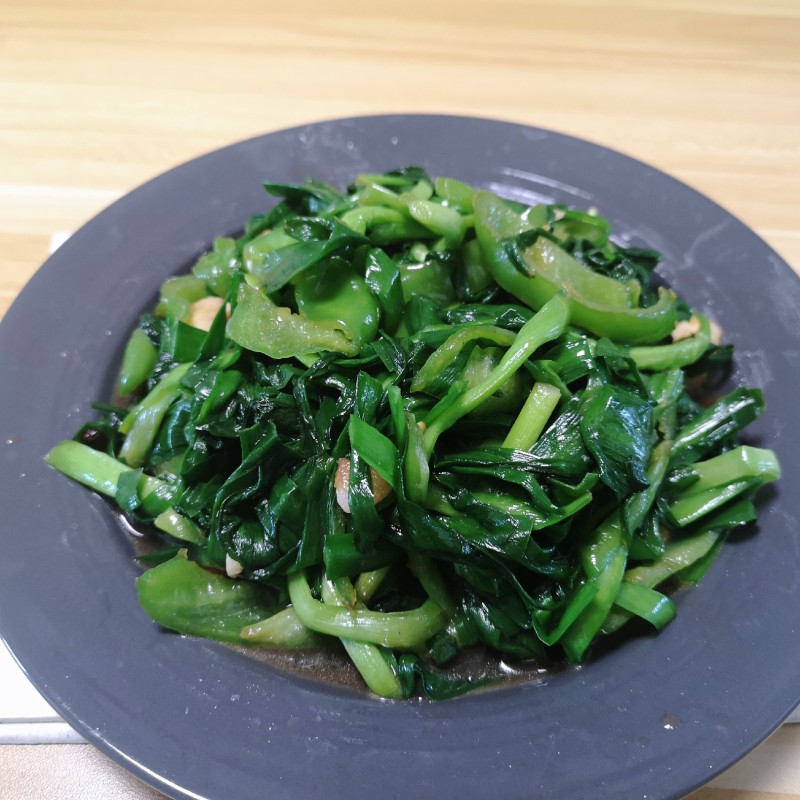 7:待韭菜变软后盛出即可。