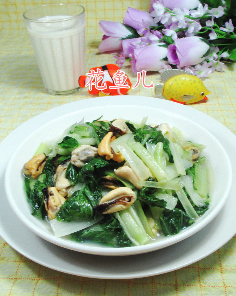 1:材料:娃娃菜、淡菜(已煮熟)