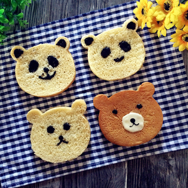 1、这是一个小熊的用料2、我用的是熊猫面包模具,有了基本的造型,可以任意发挥在上面画出自己喜欢的卡通形象3、每个品牌的烤箱功率是有区别的,所以请结合自家的烤箱来设定温度和时间4、用巧克力隔水融化后画出的表情很快凝固,所以最好事先设计好表情图案5、这里用到的吉士粉没有可以不加