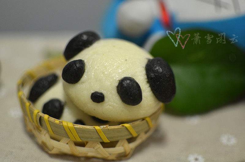 学而食习之:1,用较硬一点的面团比较好操作2,最后卷起后放置歪了,出来一个歪斜的熊猫,将就看吧