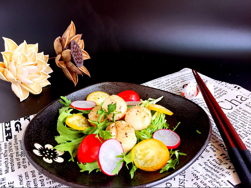8:扇贝和配菜摆盘后,淋上糖醋汁即可