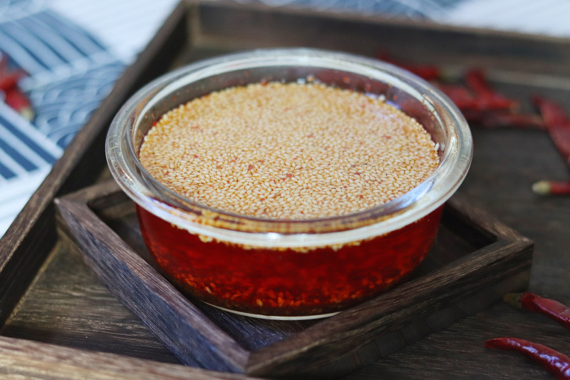 1、辣椒油彻底晾凉后就盖上,放阴凉处保存,不需要放冰箱。一次也不要做太多,吃完再搞。2、不可以用生芝麻,因为一下子烫不熟,有生芝麻味,香味也出不来。3、辣椒粉为什么不能全用细面?因为细的辣椒粉很容易烫糊,口感不好。
