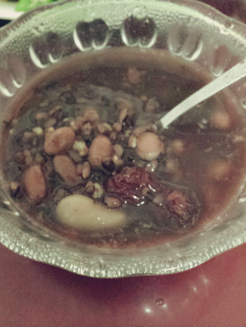 薏米适量;黑米适量;红豆适量;小米适量;红米适量;绿豆适量;小麦米适量;糙米适量;玉米片适量;燕麦适量;大米适量;