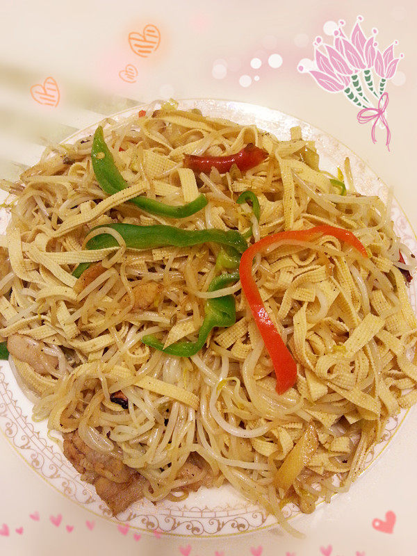 红绿尖椒适量;豆芽适量;豆皮适量;