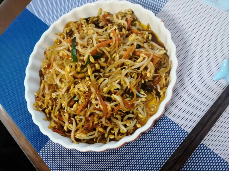 如果是散装的豆芽,清洗干净以后要记得控干水分,喜欢酸的朋友,可以在出锅前加入一勺陈醋。