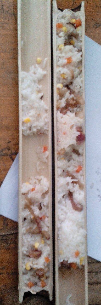 4:竹筒清洗干净后,装入搅拌好的糯米
