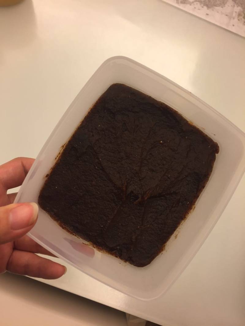 3:将以上材料放锅里加上黑糖,炒到糖化了,水没了,稠稠的,就装到盒子里放凉,放冰箱,吃的时候舀出一勺,热水一冲