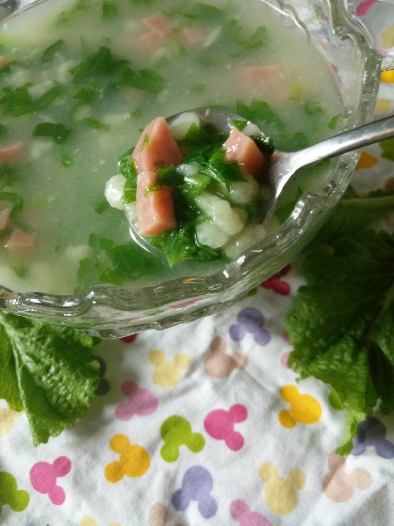 香肠小白菜疙瘩汤『珍珠翡翠汤』