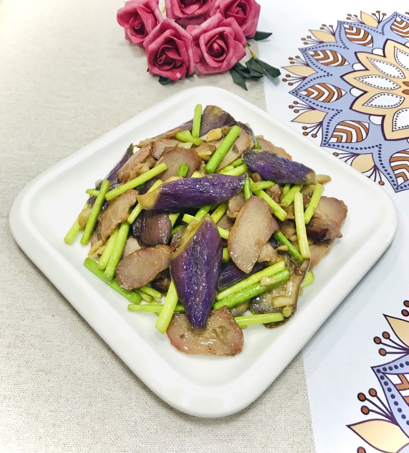 叉烧炒茄子蒜薹