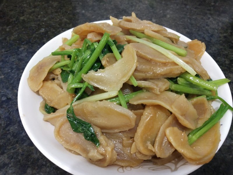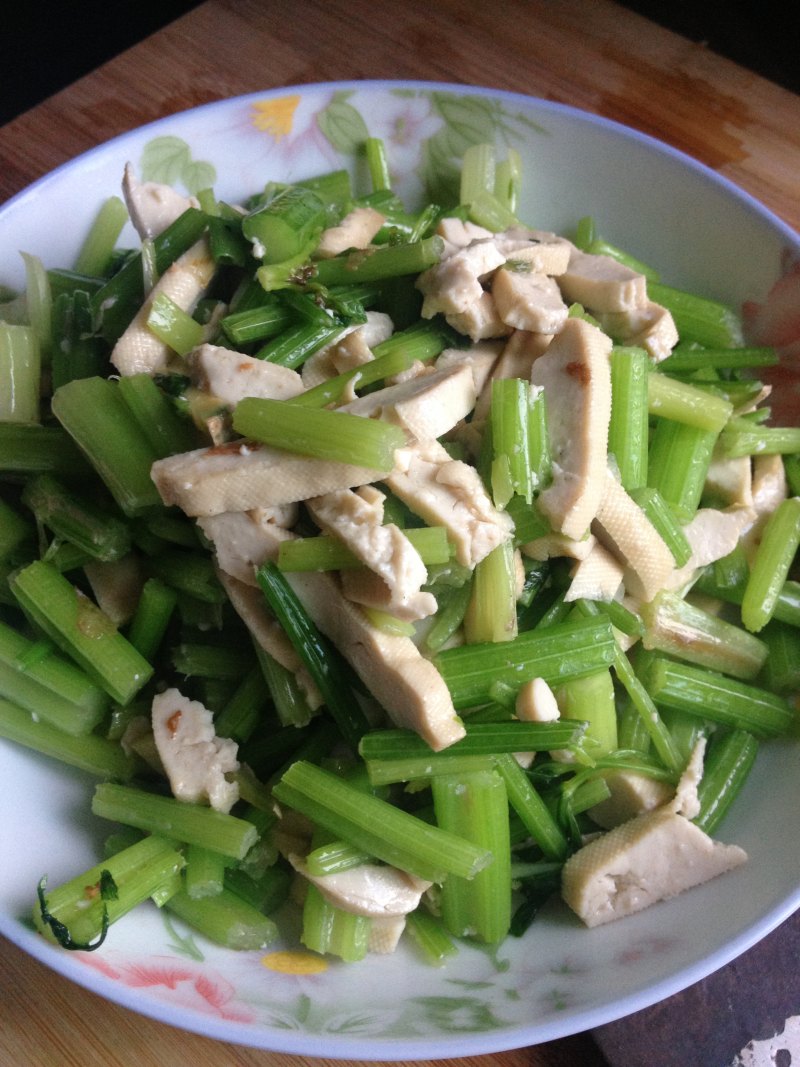 5:倒入豆干翻炒一下,再放入芹菜翻炒,加入盐、味精起锅即成。