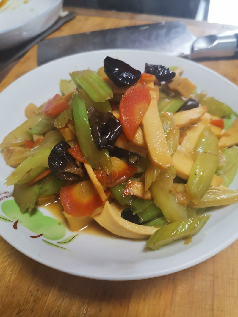 芹菜适量;豆腐干适量;木耳适量;五花肉适量;