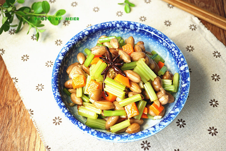 花生米400克;胡萝卜40克;芹菜丁50克;大料适量;