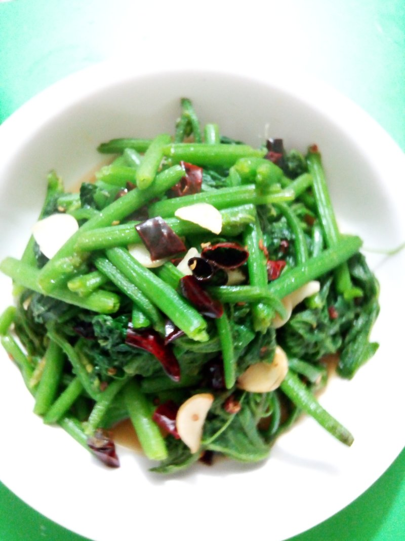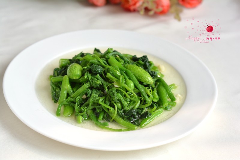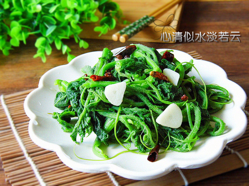 这菜要稍微多放点油,南瓜藤很吃油的,一定要放猪油炒出来才清香哦。