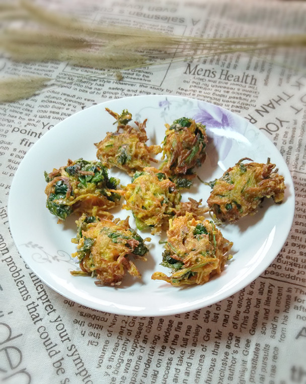 胡萝卜抓拌时,视干稀情况,可适量加一点水。炸的时候中小火,以防炸胡。