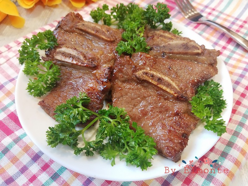 牛仔骨比牛排薄,一定不要煎时间太长,否则口感会变硬,不好吃了。