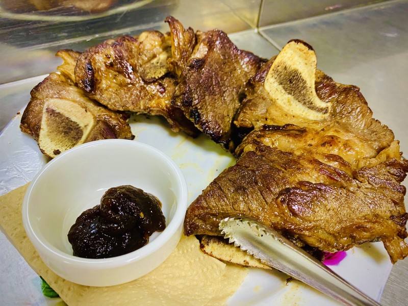 7:再淋上配送的黑胡椒牛排酱。一份香味浓郁的香烤芝加哥牛仔骨就可以吃了。