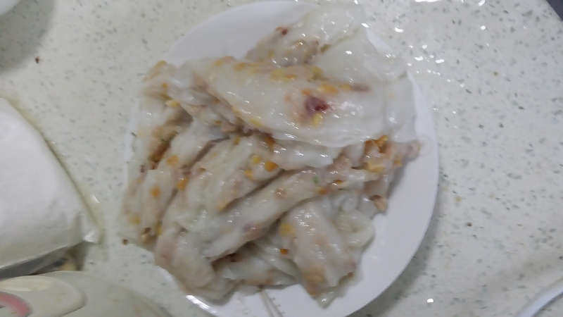 7:蒸到粉皮向冒泡那样鼓起来就熟了,不过一开锅鼓起来的包就下去了,拍不出来效果。用刮板铲起,上碟,淋点酱油就可以吃了。