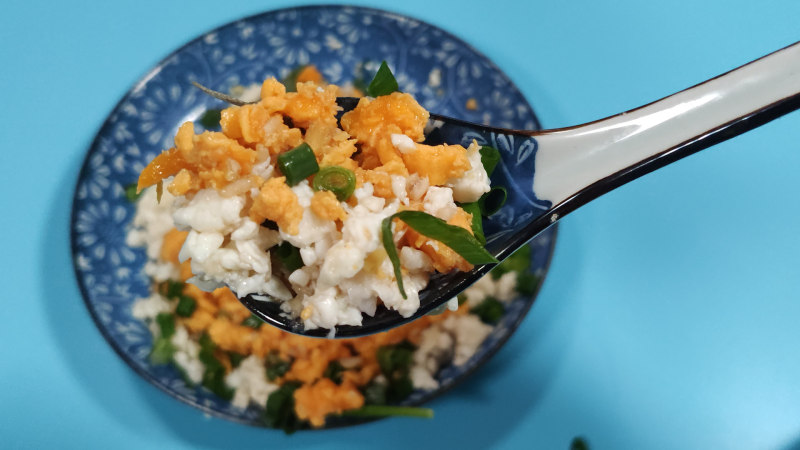 3:锅中下油,油热蛋白倒入锅中,翻炒成型倒入一般料汁翻炒出盘。