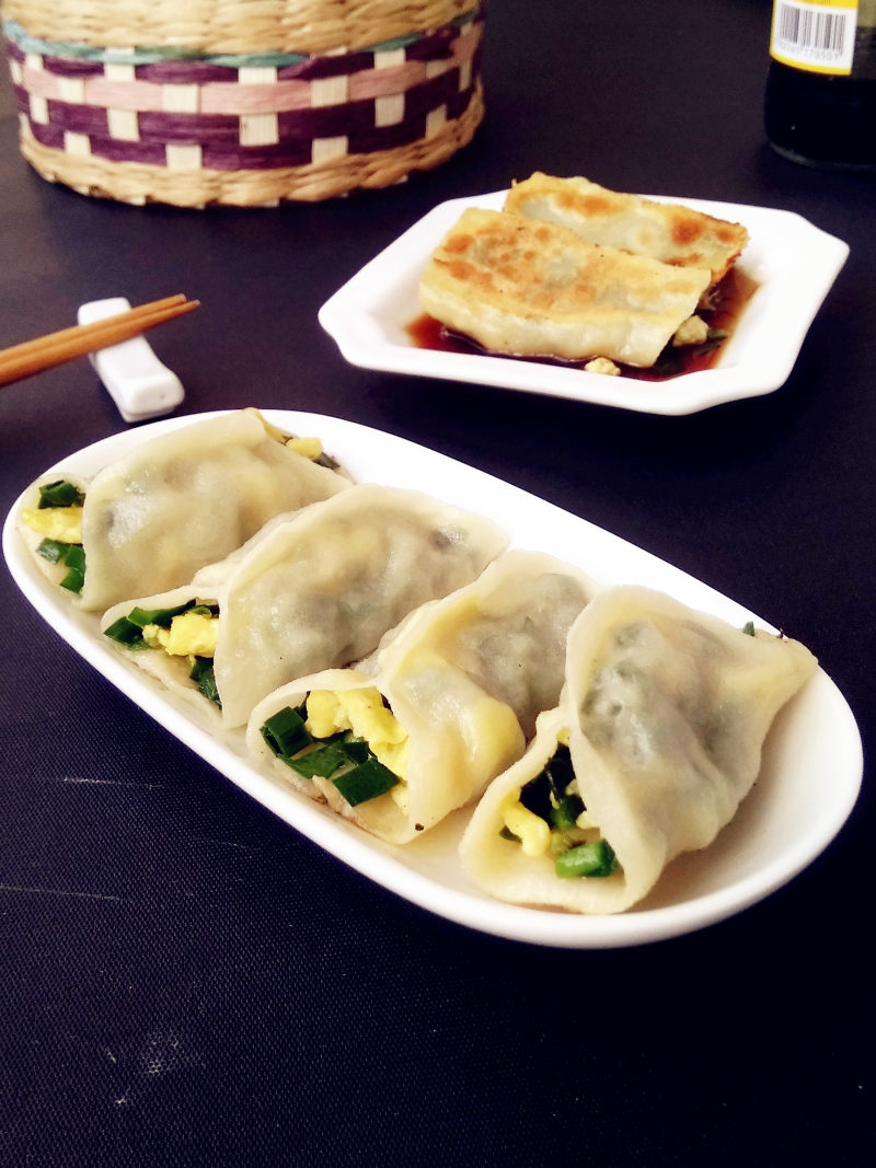 韭菜适量;鸡蛋适量;小虾皮适量;面筋适量;饺子皮适量;