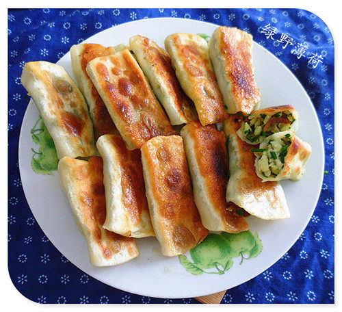 20:小火煎至底部微黄,加入约1厘米高的开水,盖上锅盖,焖一会儿。
