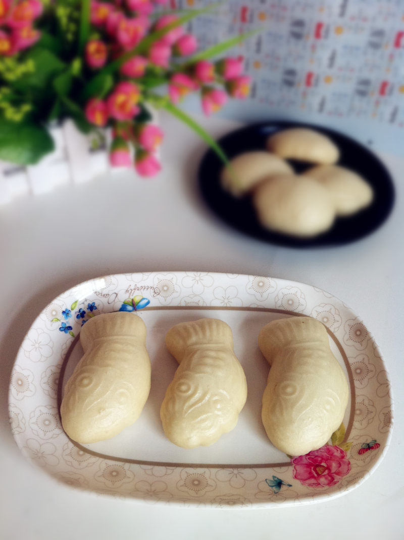 1:酵母粉用温水调开,加入到面粉中揉成面团放温暖处发酵。