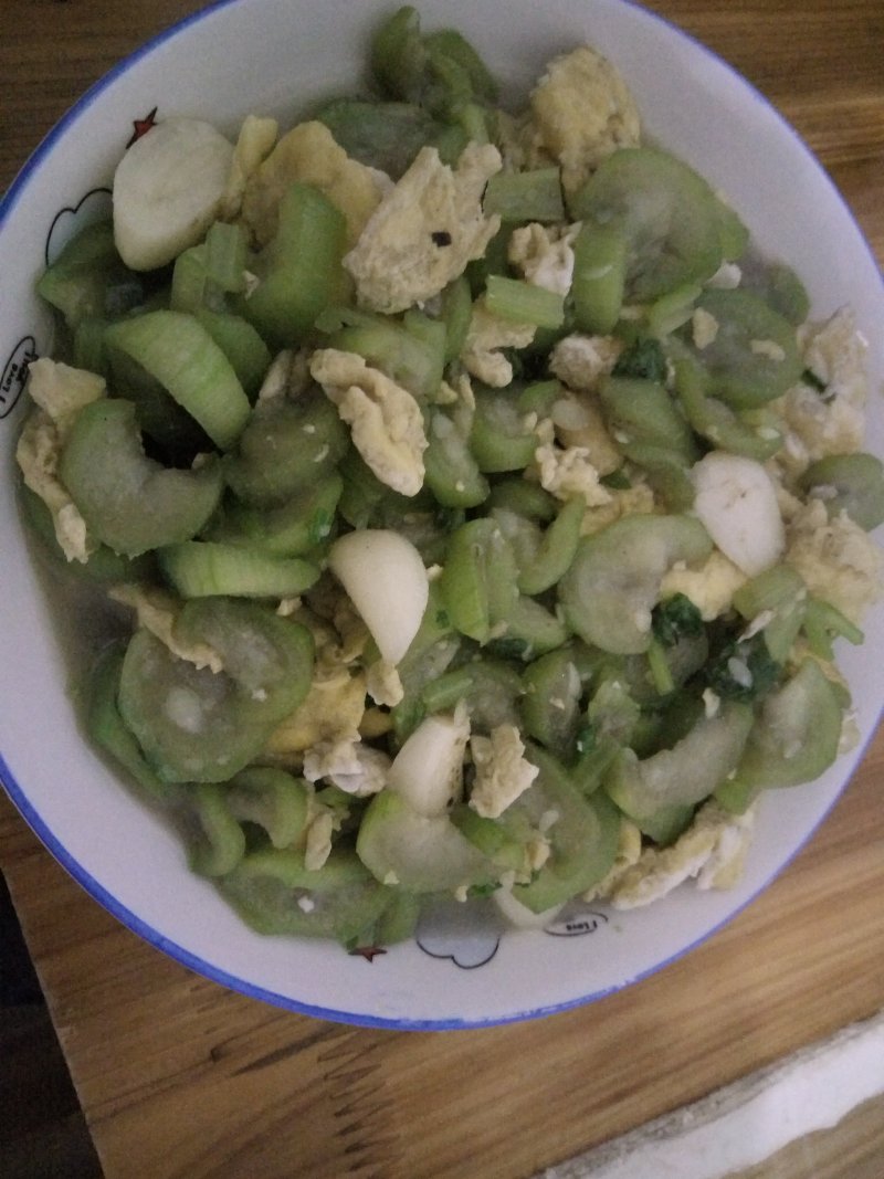 丝瓜1根;蒜苗2棵;蒜头2瓣;鸡蛋2个;