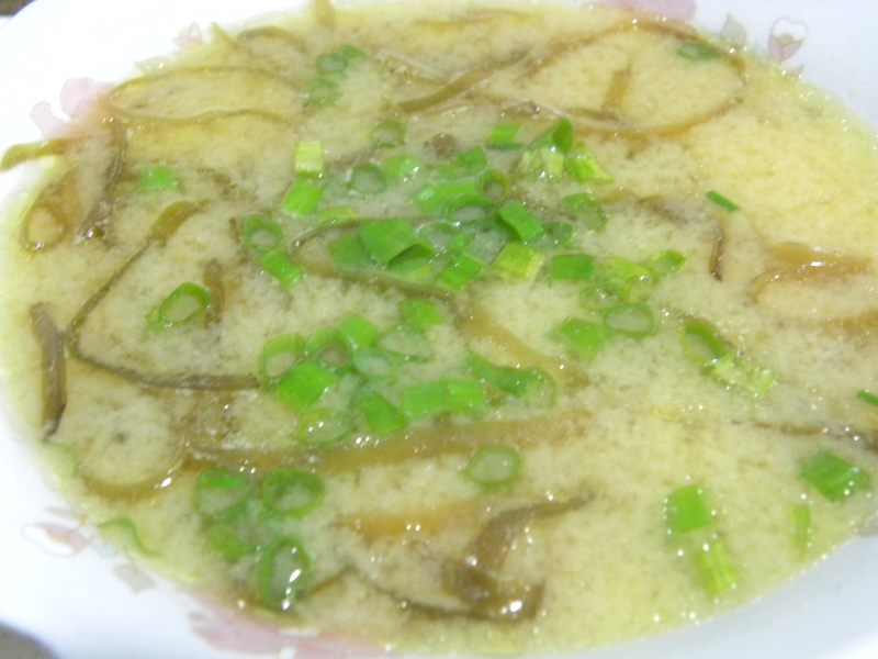 2:锅中放入开水,把海带丝倒入,煮开,再把味曾酱调入
