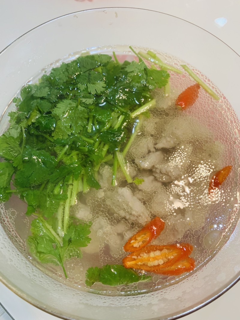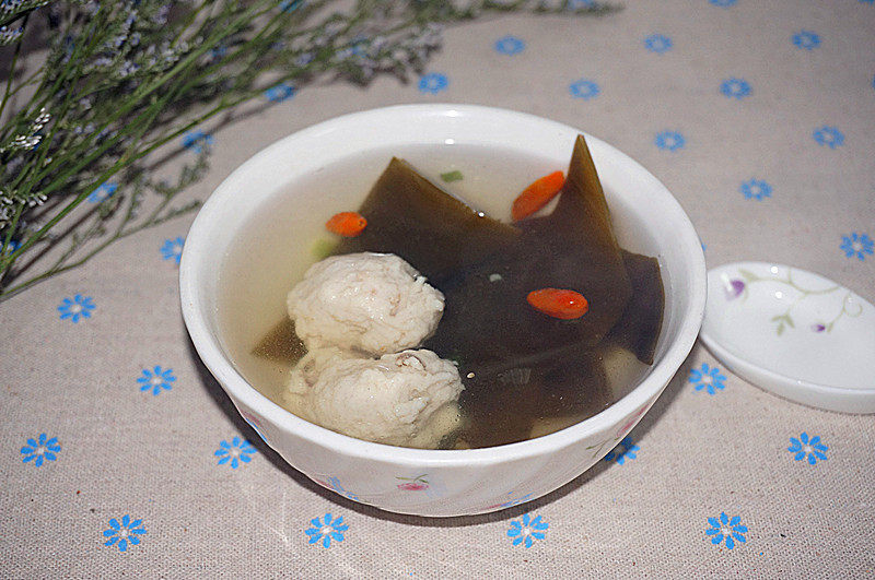 6:煮至肉丸软烂,即可关火,放入葱丝,淋几滴芝麻油即可。