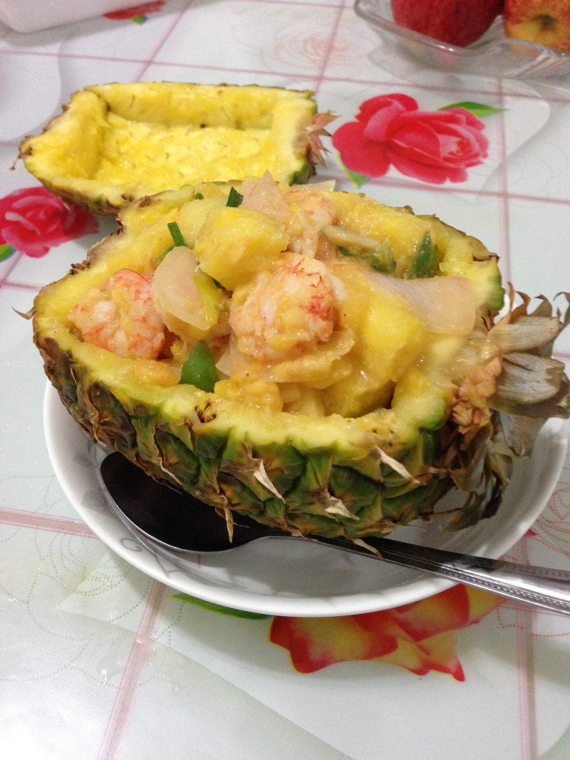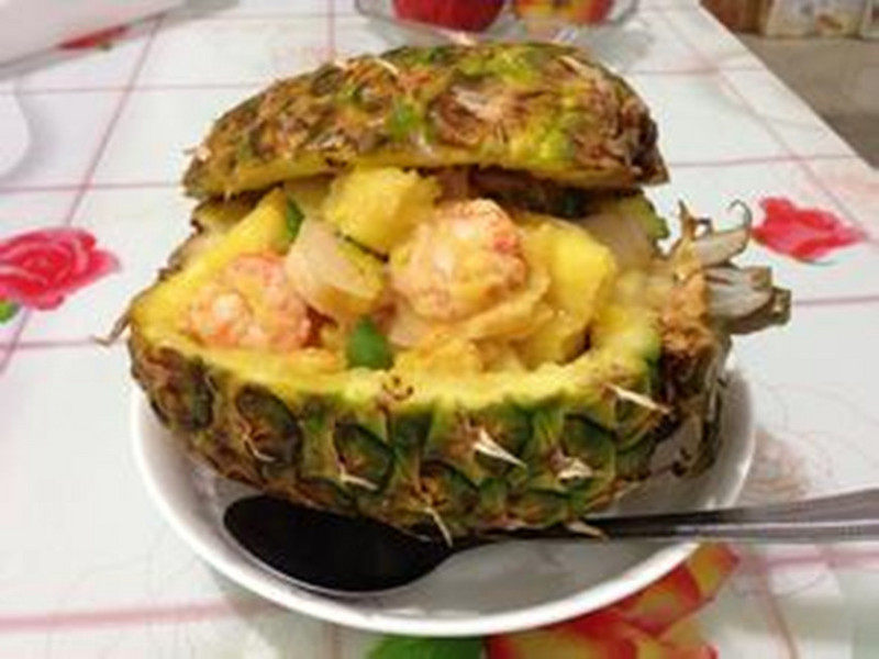 8:盛入菠萝壳内,哈哈,成品出炉