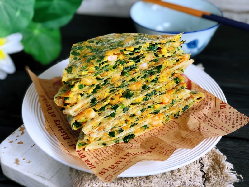 虾仁韭菜鸡蛋馅饼