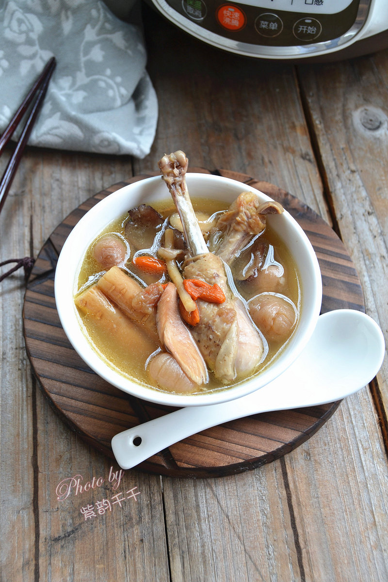 鸡1只;桂圆15克;北芪20克;姜4片;清水适量;