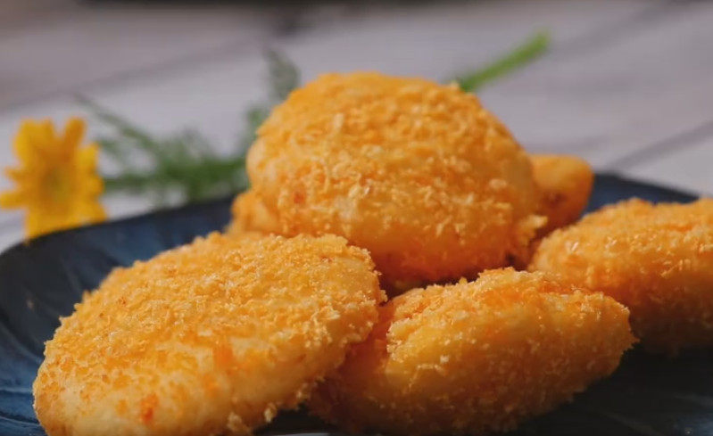 3:分成小剂子,擀扁,沾少许水,再沾上面包糠。