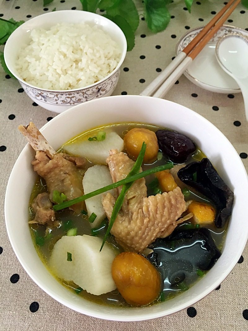 土鸡半个;山药200克;栗子150克;黑木耳适量;