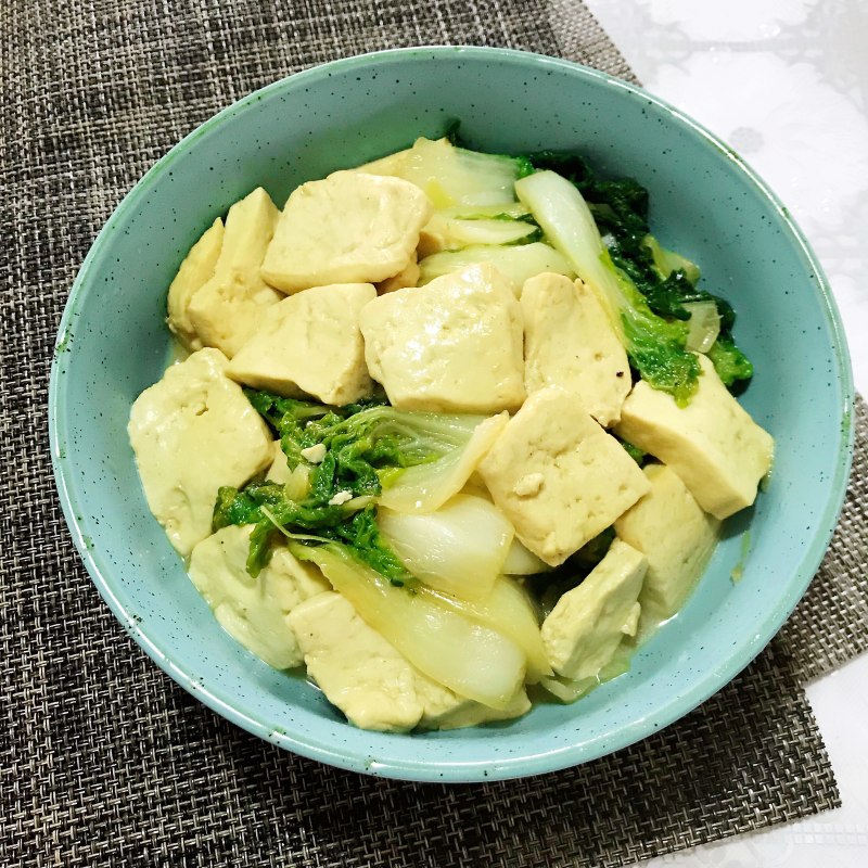 3:锅烧热,放油,放入葱花炒香,放白菜炒塌,放豆腐,放生抽,十三香。