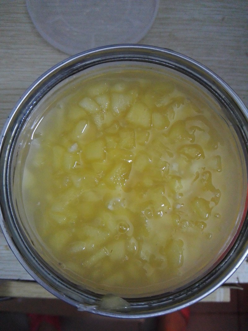5:把适量的淀粉和水搞成汤糊,然后倒入锅里,和苹果一起小火煮,煮15分钟就好了,待冻了,就可以用瓶子装起来放冰箱了!