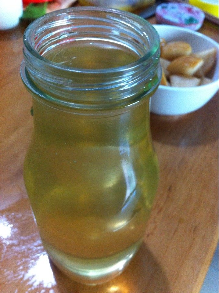 6:苹果醋好了之后只要把苹果块拿出来,找个瓶子把苹果醋倒出就好了,