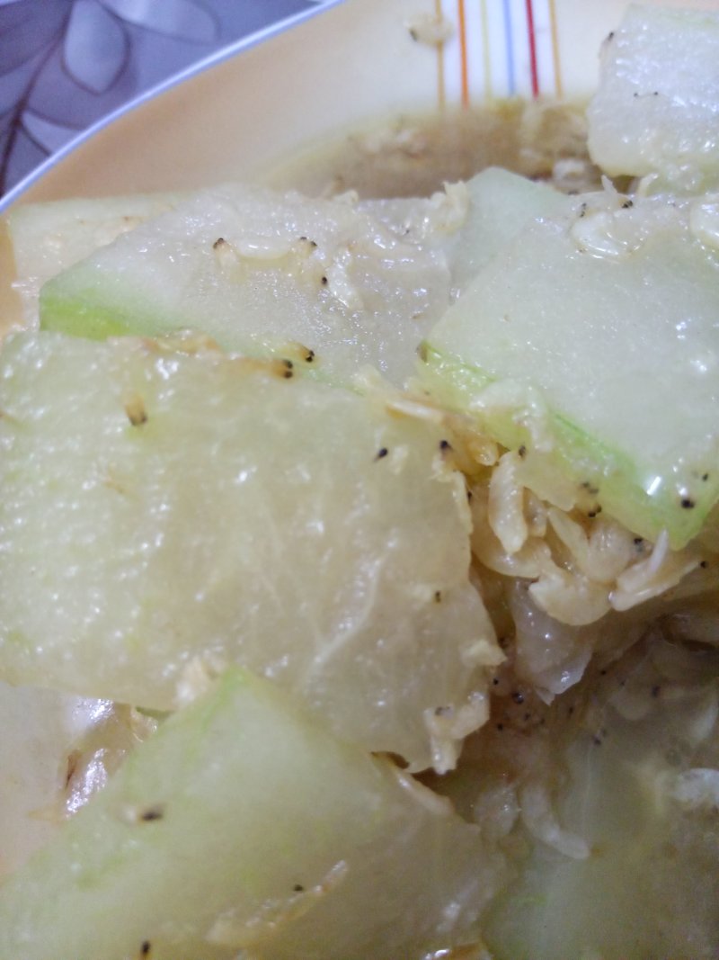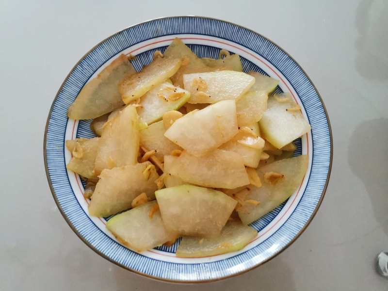 5:冬瓜将熟时,下虾皮炒匀,再焖煮二三分钟。