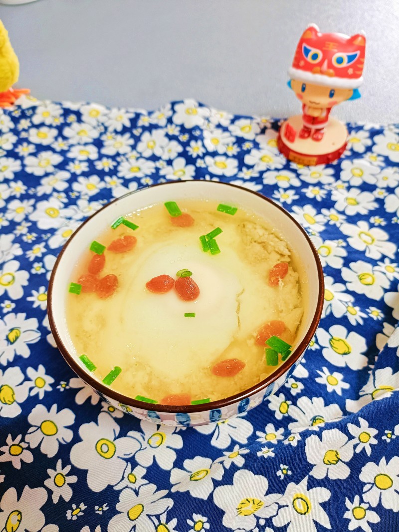 4:上锅蒸,鸡蛋凝固,倒入适量开水,放入枸杞在蒸10分钟。