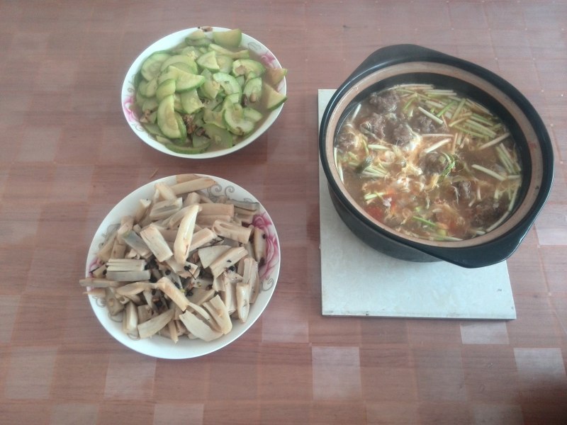 盐3克;肉酱1汤匙;榨菜30克;