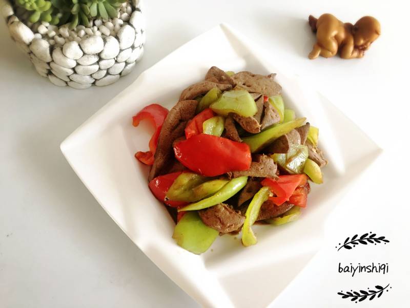 7:猪腰炒辣椒。本人不太吃辣。喜欢吃辣的选辣一点的辣椒,或在炒猪腰的时候放些小辣椒。