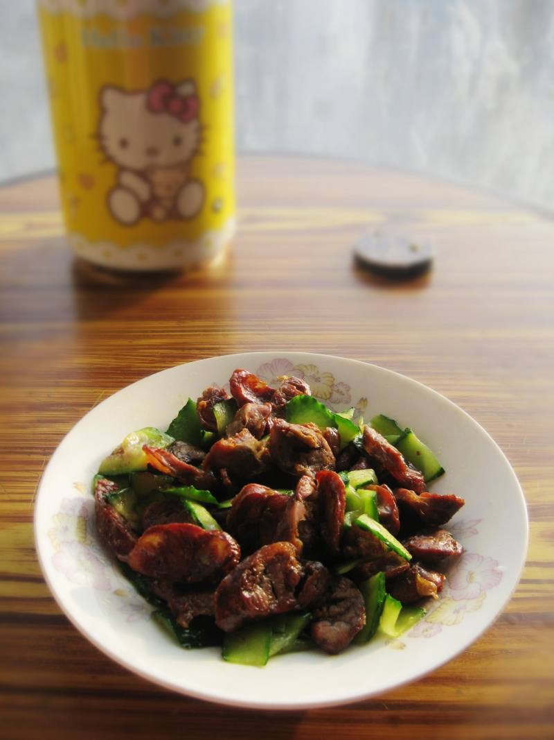4:加入青瓜,耗油,盐,炒熟即可出锅。