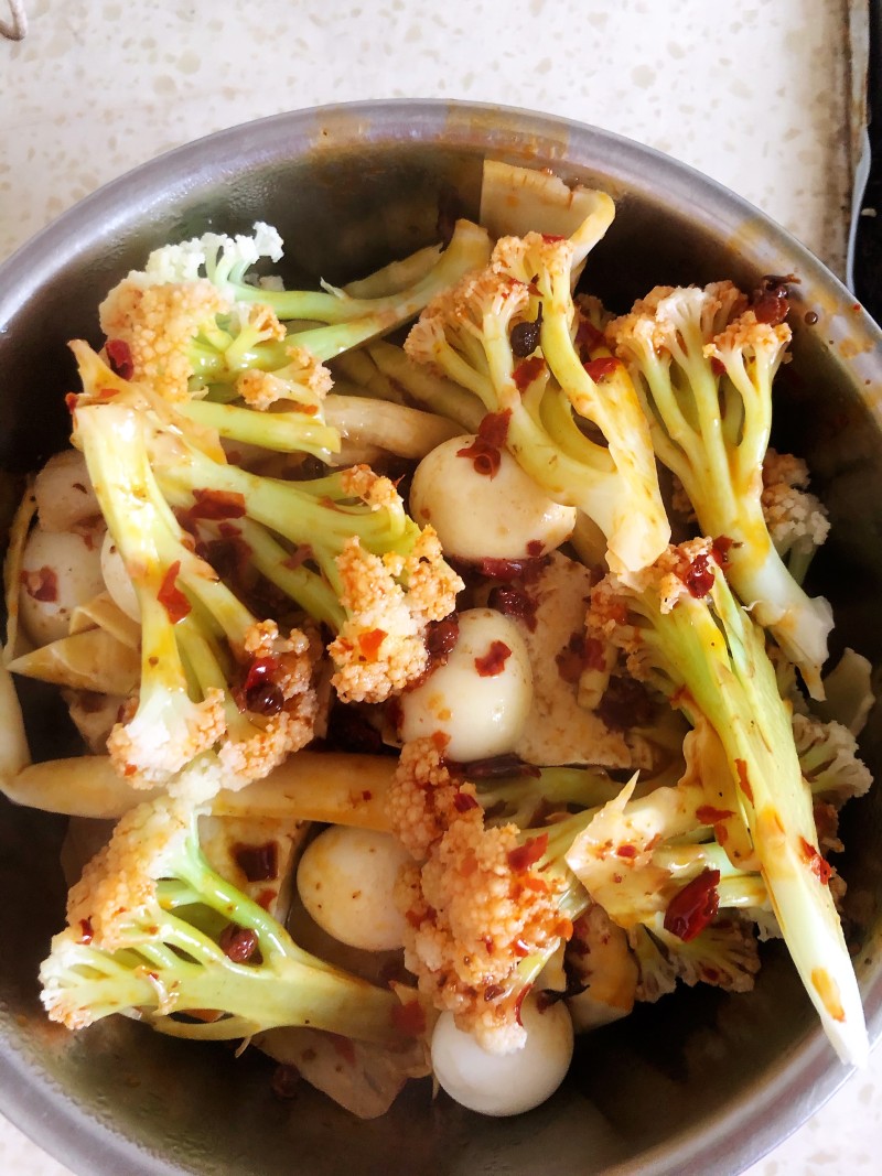 8:用煮菜的水烫一下花菜即可捞出。