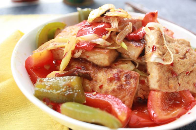 8:一道快速的好吃的家常菜——洋葱青椒焖豆腐